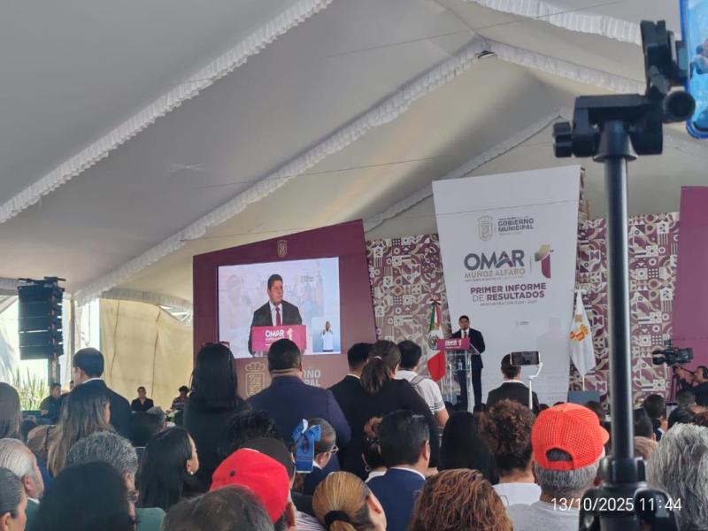 CUAUTLANCINGO.-Octubre 13 del 2025.-En el marco de su Primer Informe de Gobierno, Omar Muñoz Alfaro expuso los avances y objetivos de su administración delante de la ciudadanía de Cuautlancingo, con un discurso centrado en la transformación como eje rector de su gestión.