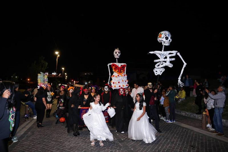 San Andrés Cholula, Puebla. –Noviembre 1 del 2025.- En el marco del Festival del Día de Muertos, la presidenta municipal Lupita Cuautle Torres encabezó el _Carnaval Camino al Mictlán_ con más que reunió a más de mil 200 participantes en un recorrido lleno de color, música y tradición.