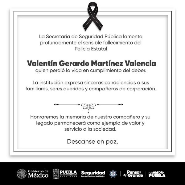 PUEBLA.-Marzo 31 del 2026.-El Gobierno del Estado de Puebla, a través de la Secretaría de Seguridad Pública (SSP), lamenta profundamente…