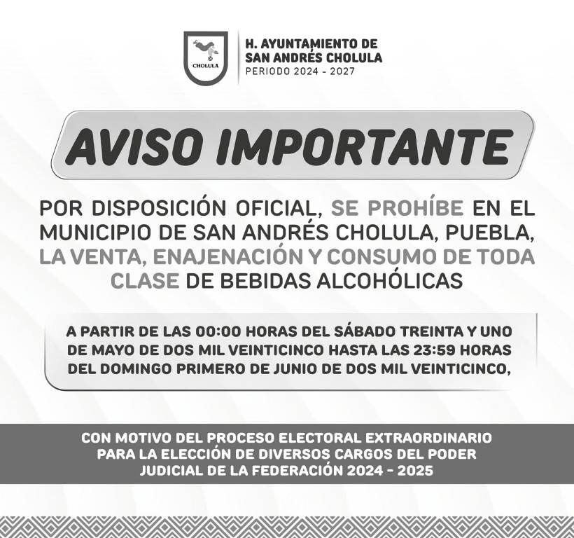 San Andrés Cholula, Pue.- Mayo 31 del 2025.- Por disposición oficial a partir del primer minuto del día 31 de…